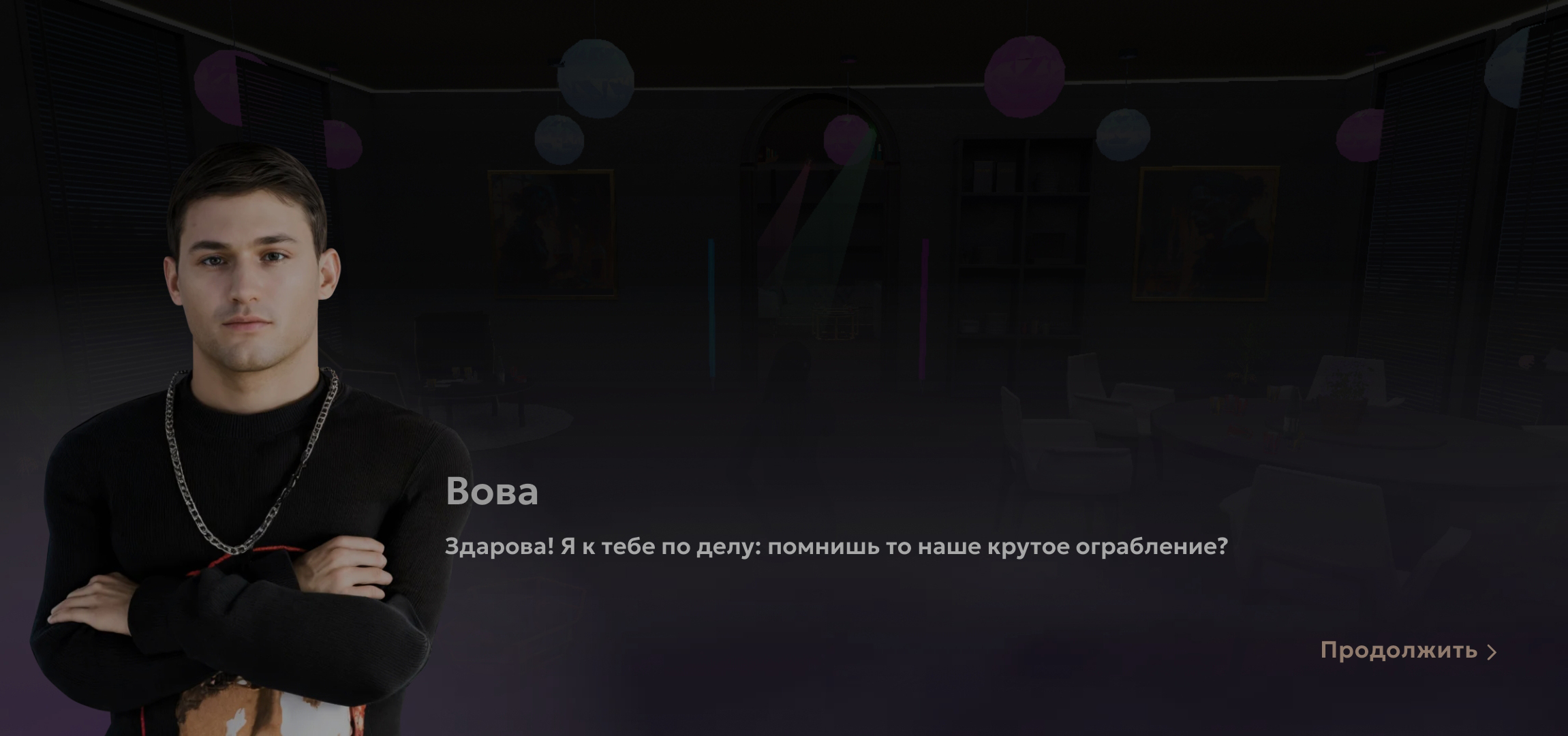 После ролика действие переносится в реальное время. С тобой связывается Вова и предлагает провернуть ещё одно дельце.