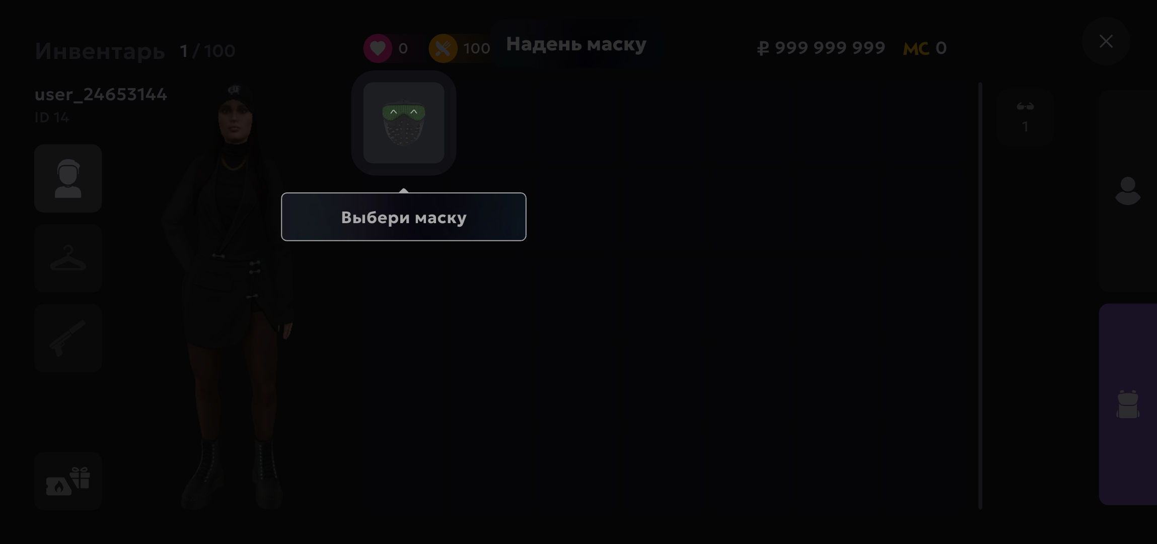 Добравшись до точки, подойди к Вове и поговори с ним с помощью кнопки, появившейся внизу экрана. Вова предложит провернуть ещё одно дело и выдаст тебе маску. Надень её и отправляйся взламывать машины.