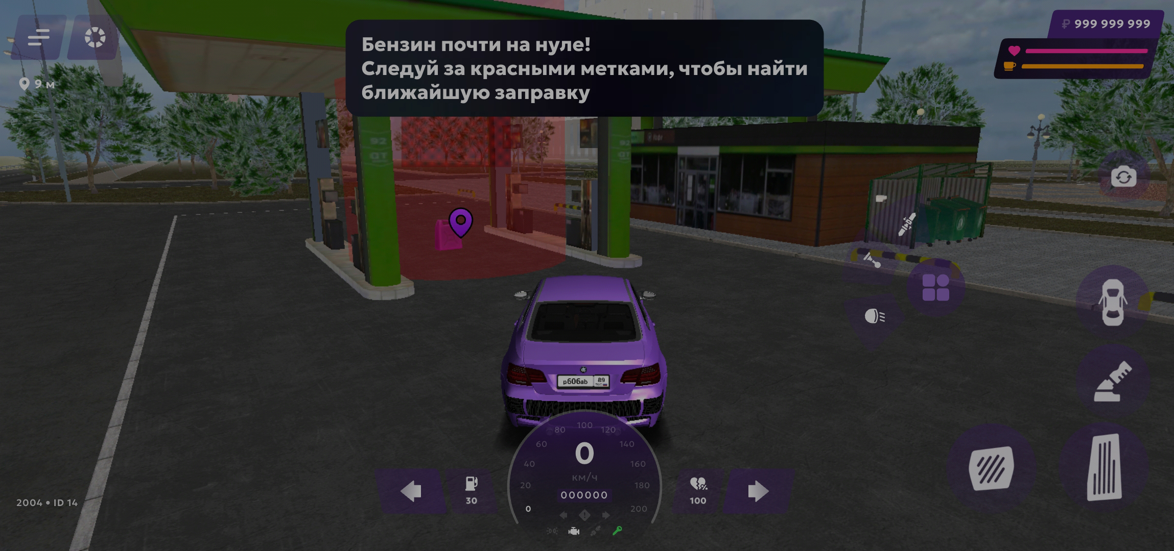 Подсказка: убедись, что проехал через все красные маркеры на дороге, иначе ты не сможешь взаимодействовать с заправкой.