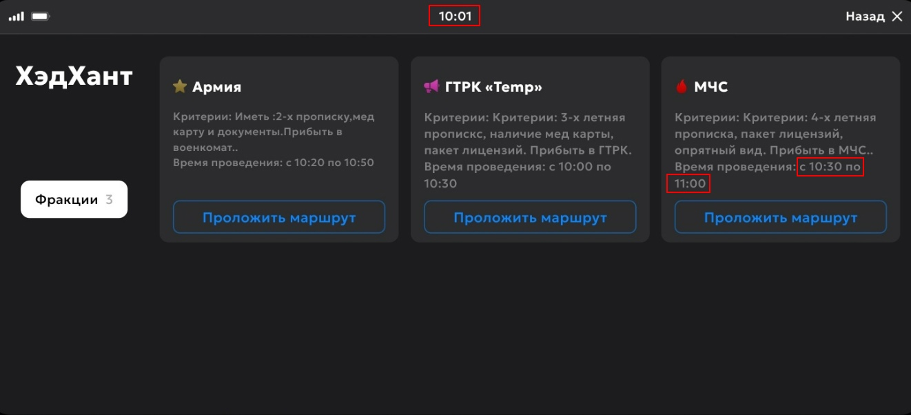 Для этого заходим в Планшет > Вакансии > Фракции, и смотрим на какое время свободна гос. волна.