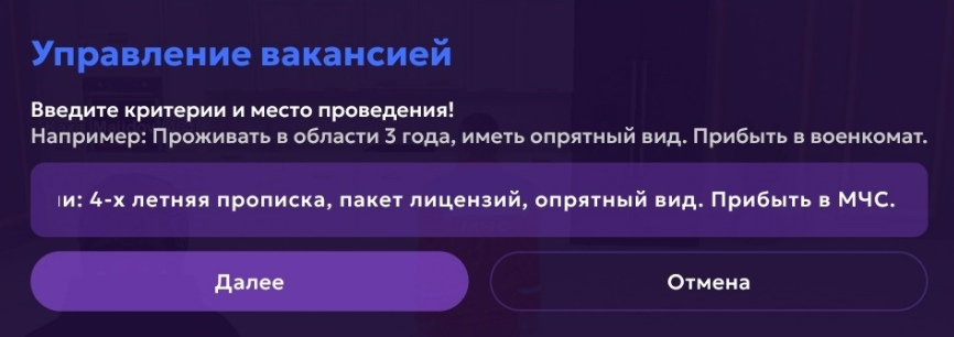 Необходимо указывать где проходит собеседование/призыв, критерии.