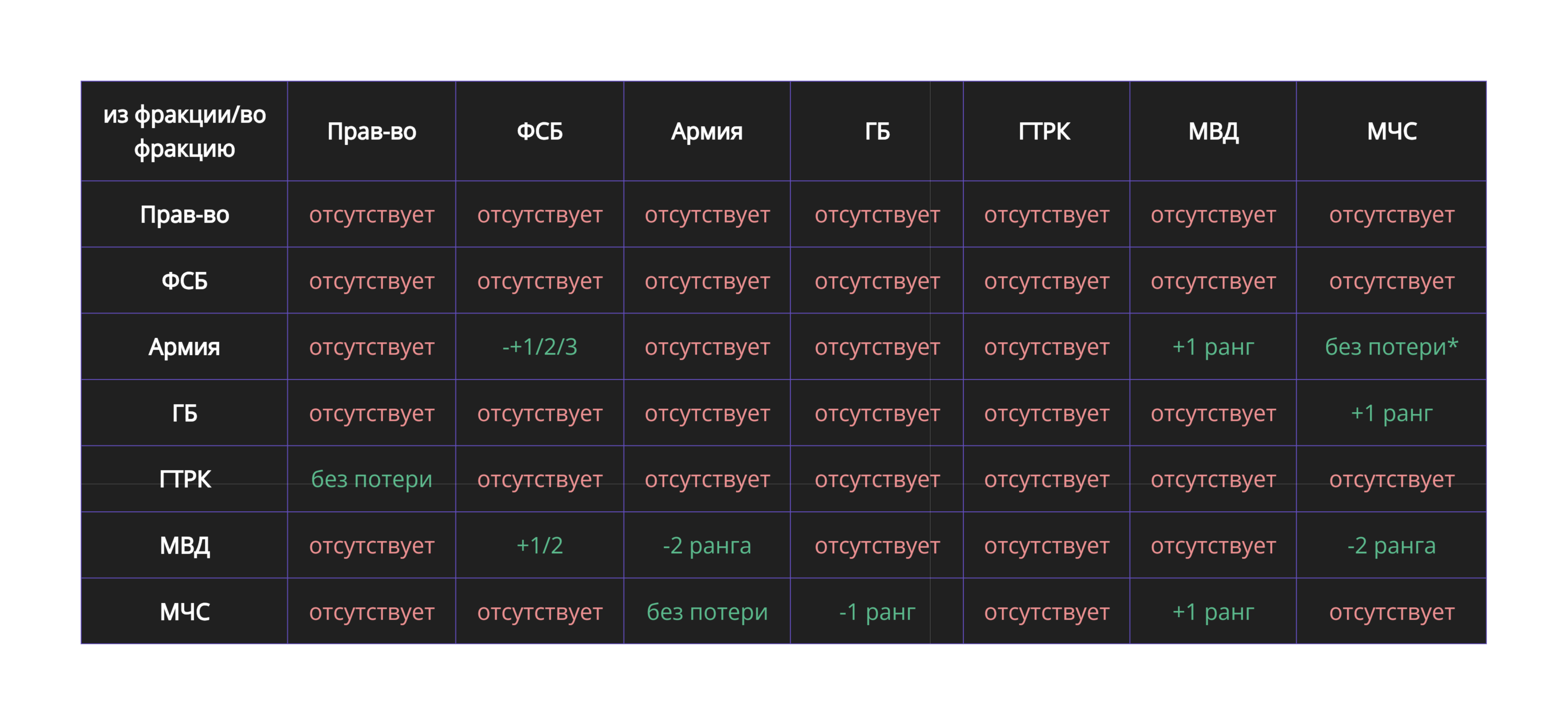 Переводы в МВД (От +1 до +2 рангов на усмотрение лидера)