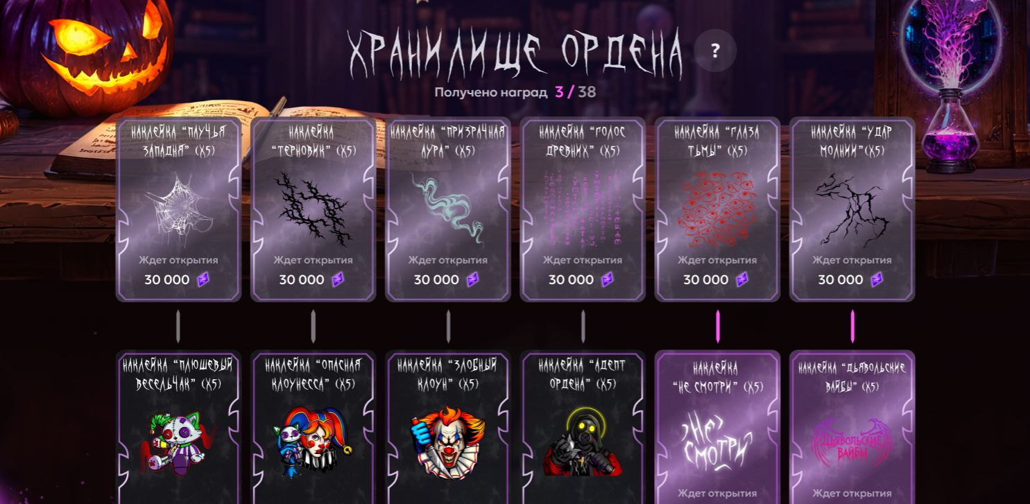 В благодарность за активную помощь Орден откроет доступ к своему секретному хранилищу, где ты найдешь множество интересных предметов: скинов, аксессуаров, машин и многого другого — все это можно приобрести за кристаллы, ивентовую валюту, которую ты получаешь, выполняя задания NPC или участвуя в Противостоянии.