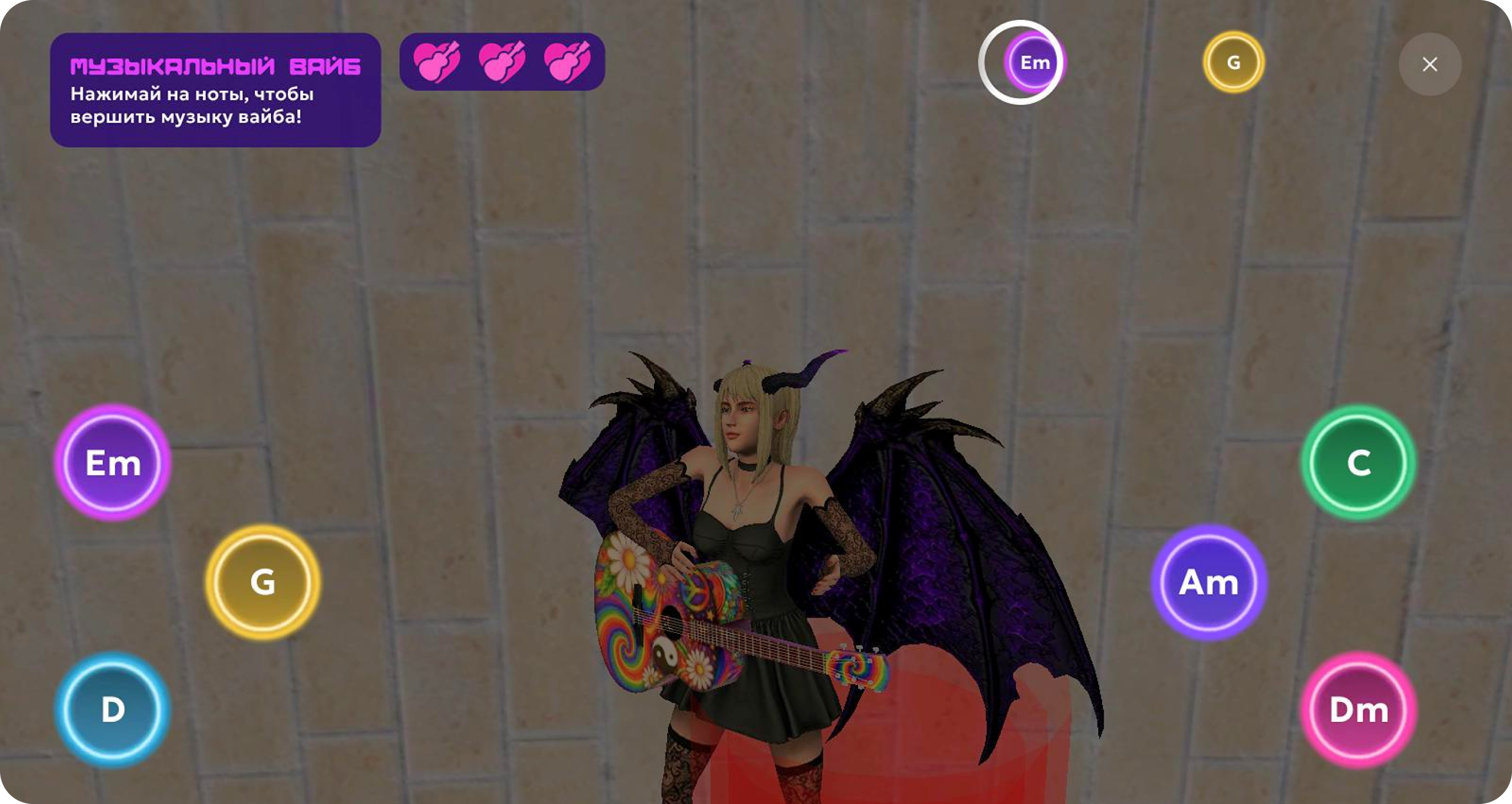 Стань центром внимания и сыграй на гитаре определенные мотивы.